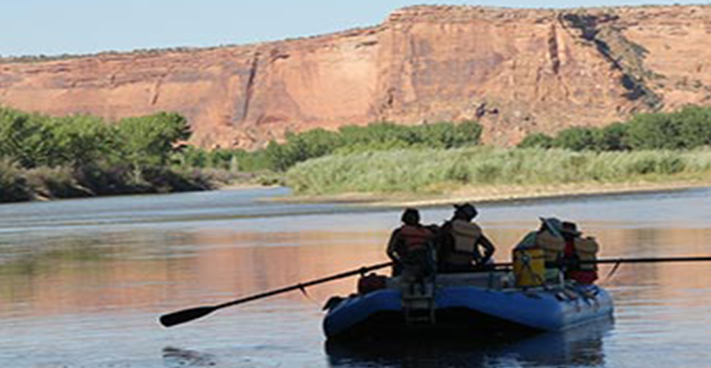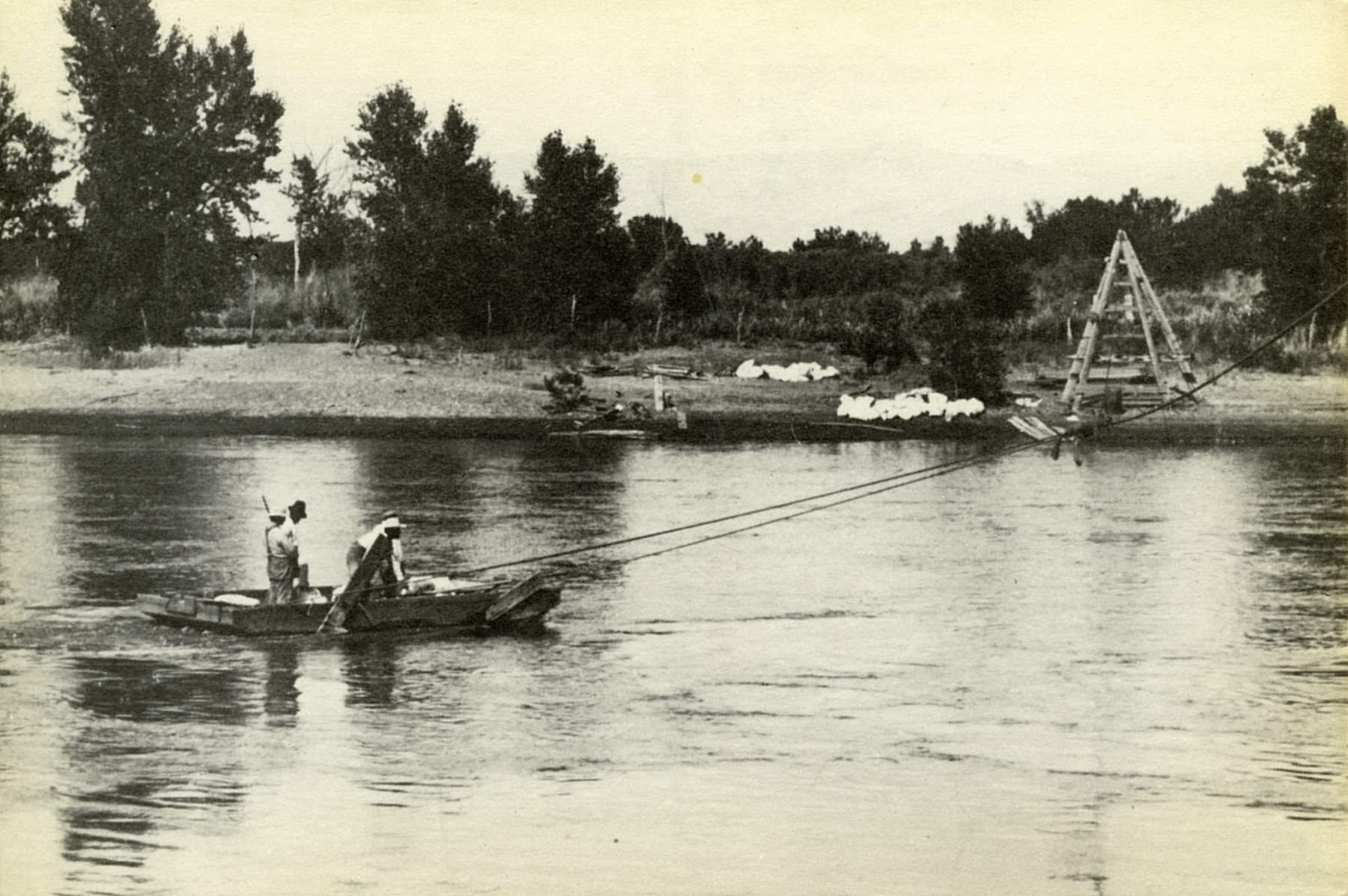Elmer Riggs transporting dinosaur bones across the river.